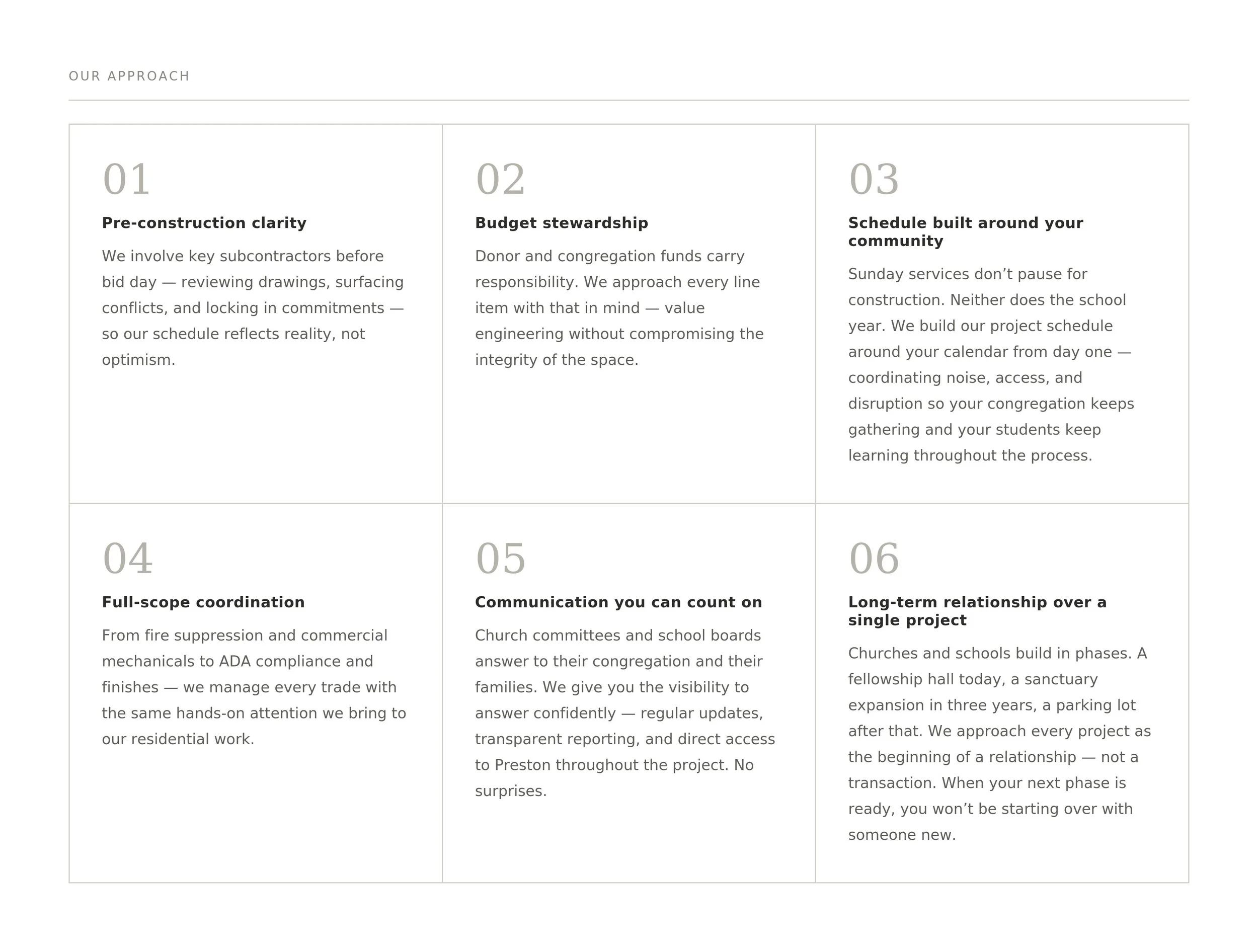 Faith-based and educational projects require a level of planning discipline that goes beyond standard commercial work.